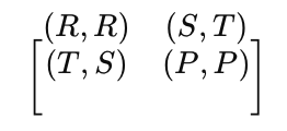 This is modeled in a payoff matrix similar to the prisoner’s dilemma: